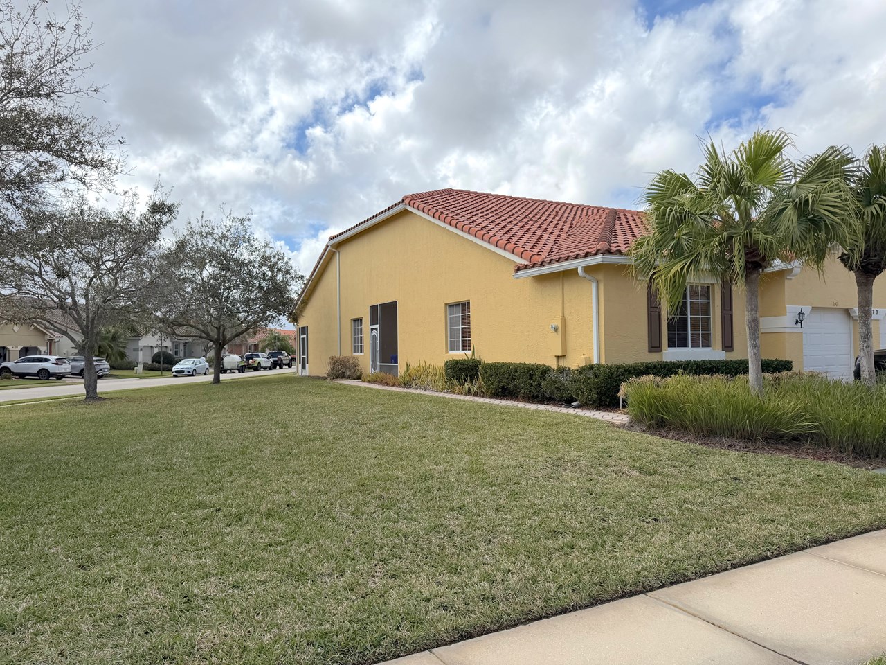 Largest villa in Woodfield! Corner unit on oversized corner lot! Walking distance to clubhouse. Tile flooring throughout. Open concept with vaulted ceilings and plant shelves. Kitchen with cabinets galore, tile countertops. Split plan.